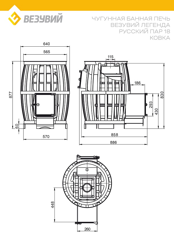 Печь ВЕЗУВИЙ Легенда Русский пар Ковка 18 (271) диаметр дымохода: 115 мм