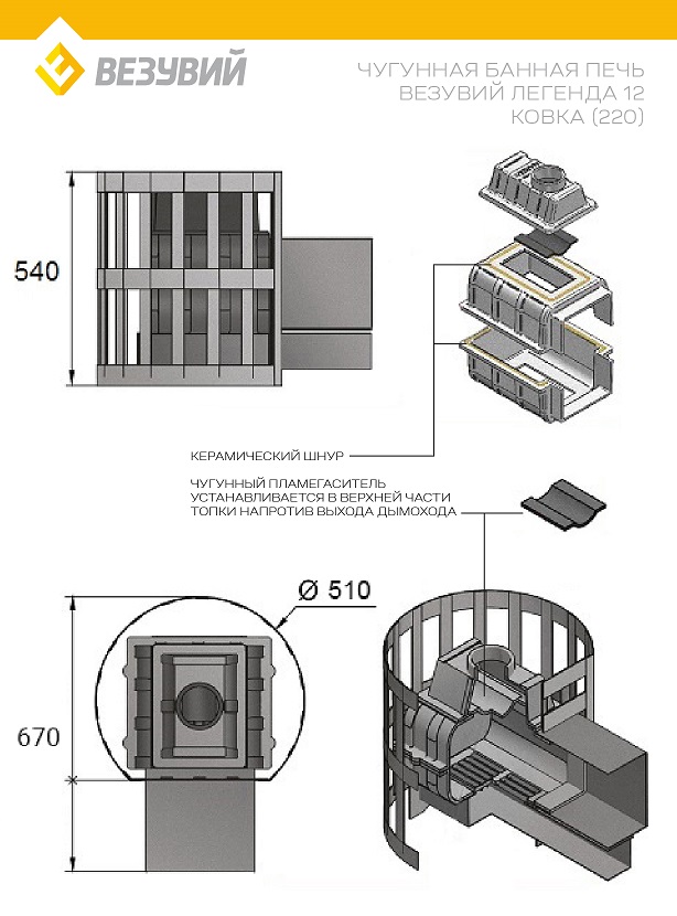 Печь ВЕЗУВИЙ Легенда Ковка 12 (220) диаметр дымохода: 115 мм