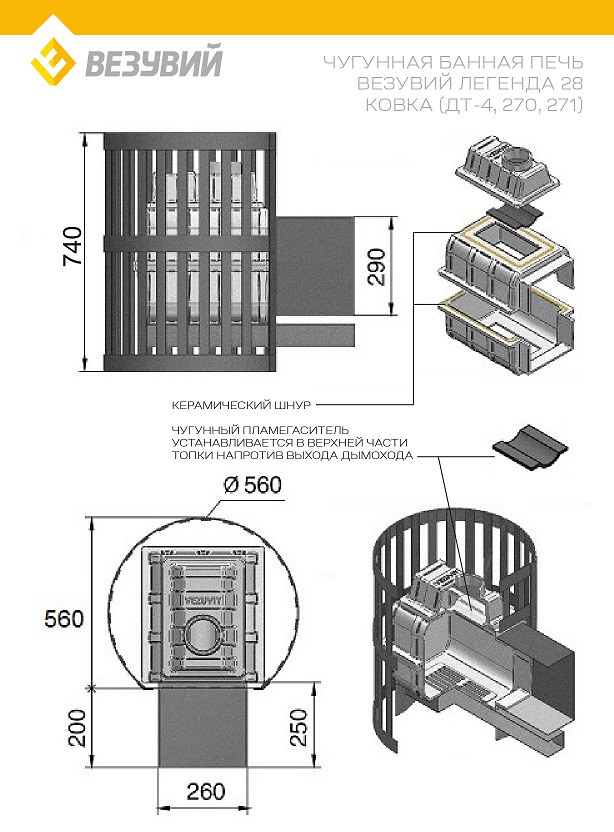 Печь ВЕЗУВИЙ Легенда Ковка 28 (271) диаметр дымохода: 115 мм