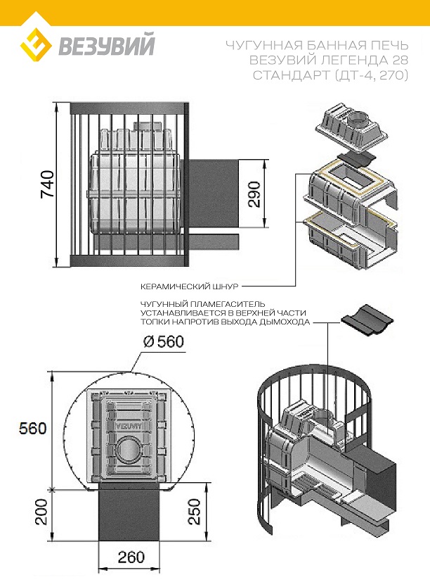 ВНИМАНИЕ! Элементы дымохода и камни не входят в комплект печи и приобретаются отдельно.