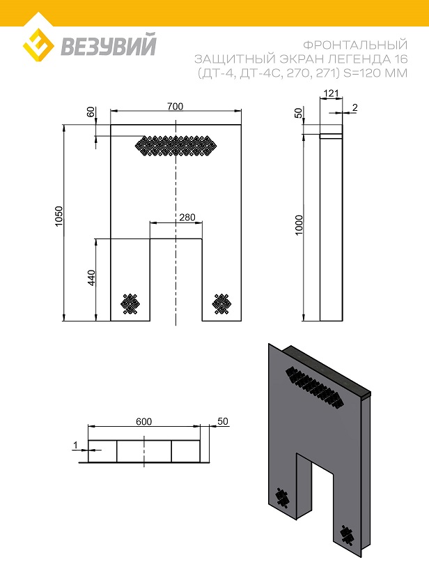 Экран полностью совместим с печью Легенда 16 в модификациях с дверками ДТ-4, ДТ-4С, 270, 271. Размеры портала и арки точно соответствуют печам указанных моделей и не требуют предварительной подгонки по месту.