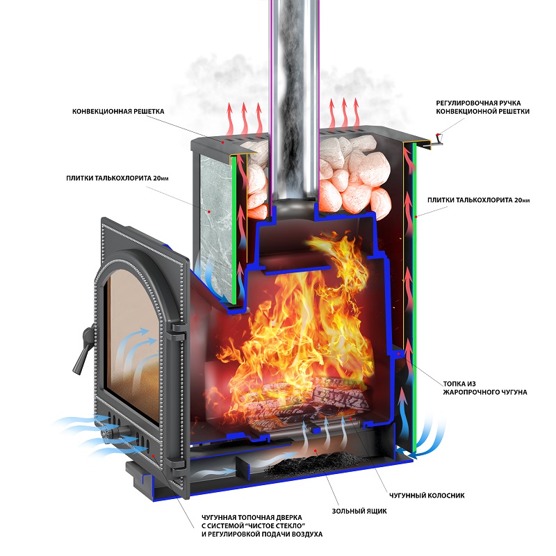 - Материал топки: Жаростойкий чугун (ГОСТ 1412-85)