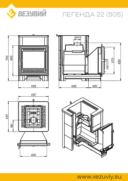 Печь ВЕЗУВИЙ Легенда 22 (505) талькохлорит диаметр дымохода: 115 мм