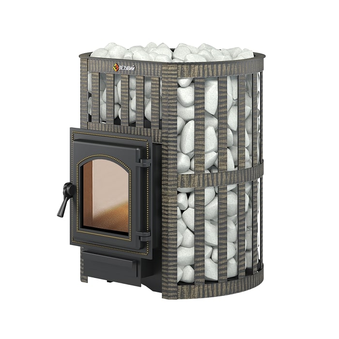 Печь ЛЕГЕНДА Ковка 22 (270) укомплектована чугунной герметичной, самоохлаждаемой дверцей с жаропрочным стеклом «SHOT ROBAX», с оборудованной системой самоочистки, и кованным конвекционно-вентилируемый кужухом.Большая масса камней надолго сохранит тепло после угасания огня в топке печи, также камни экранируют инфракрасное излучение исходящее от раскаленной топки печи.