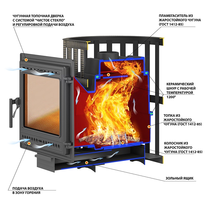 - Материал дверки: Жаростойкий чугун (ГОСТ 1412-85)