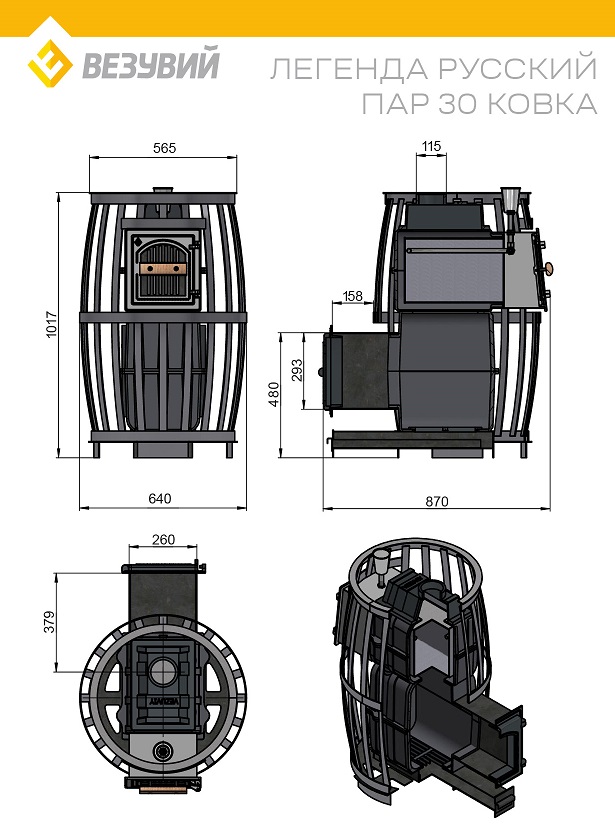 Печь ВЕЗУВИЙ Легенда Русский пар Ковка 30 (270) диаметр дымохода: 115 мм