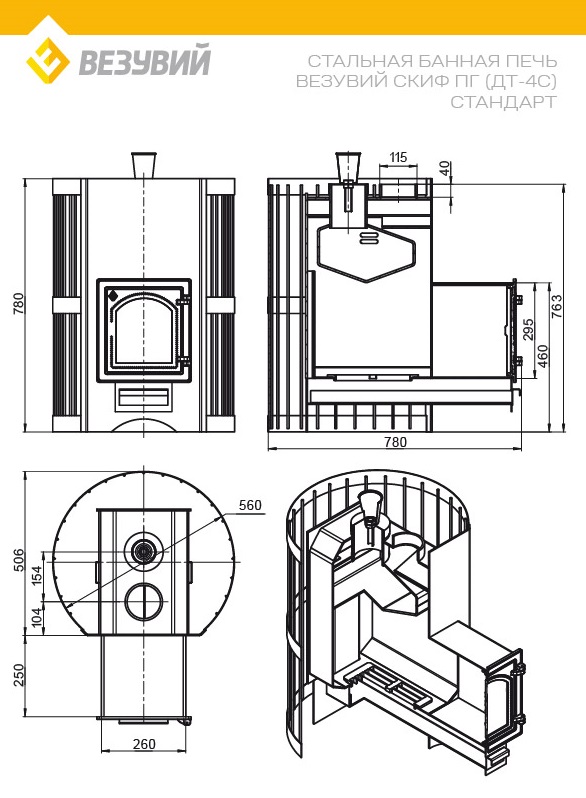 Печь ВЕЗУВИЙ Скиф Парогенератор Стандарт (ДТ-4С) диаметр дымохода: 115 мм
