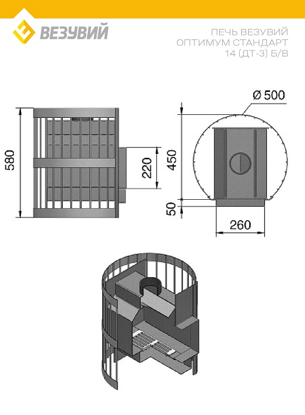 Печь ВЕЗУВИЙ Оптимум Стандарт 14 (ДТ-3) б/в диаметр дымохода: 115 мм