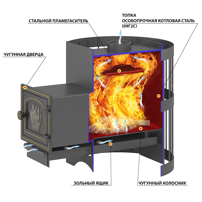ВНИМАНИЕ! Элементы дымохода и камни не входят в комплект печи и приобретаются отдельно.