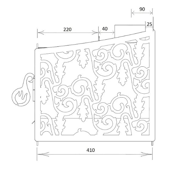— Габаритная (высота топки (420 мм), длина топки (400 мм).