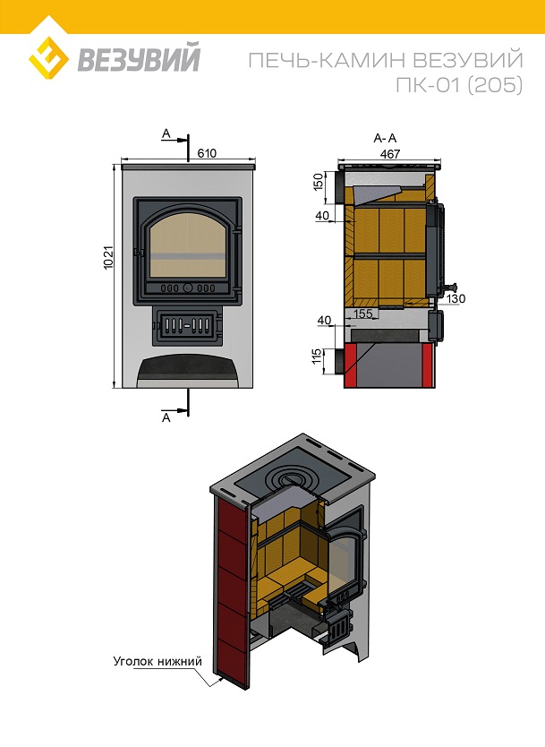 Преимущества Печи-камина ВЕЗУВИЙ ПК-01 (205):