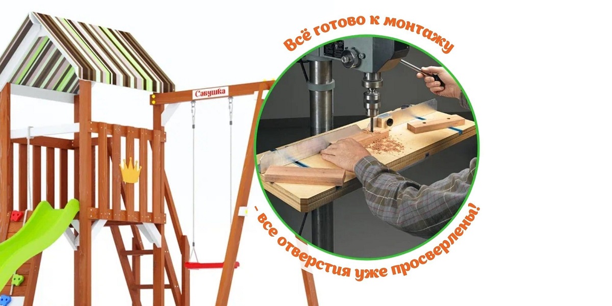 — Широкая горка, качественная древесина, сертифицированные материалы
