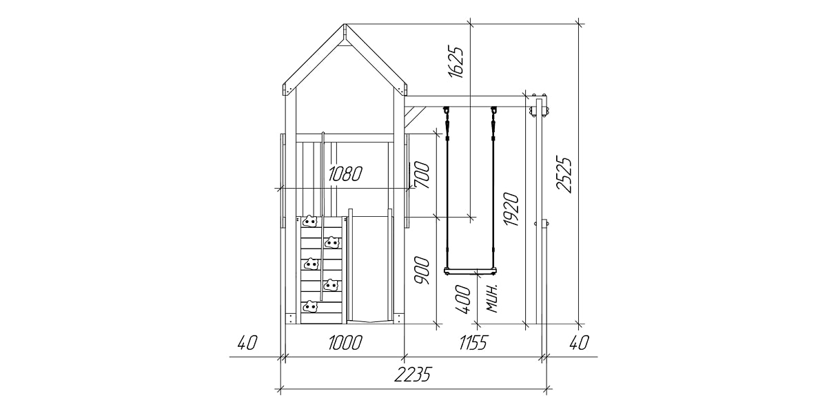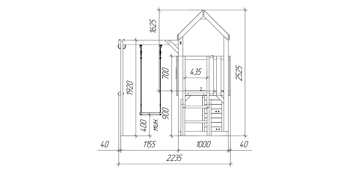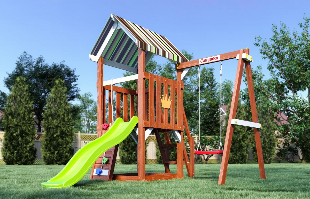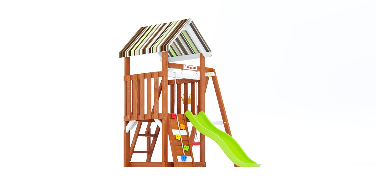 Это базовая модель серии, включающая всё самое необходимое: башню, горку, качели, скалодром. Без излишеств, но с продуманной безопасностью и устойчивой конструкцией. Подойдёт как первая площадка для малыша.