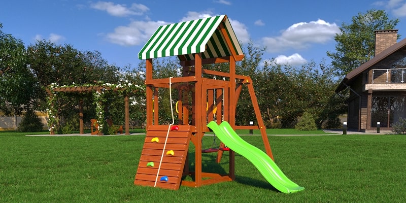 Горка, Домик (замок), Качели, Скалодром |