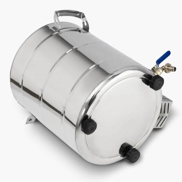 Бак оснащен сливным краном для отработанного сырья, его комфортно и легко мыть после использования. Диаметр горловины куба составляет 11 см, туда легко пролезает рука, чтобы очистить емкость от отработанного сырья, это гарантирует удобство в эксплуатации.
