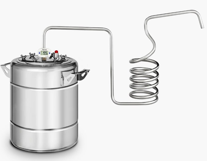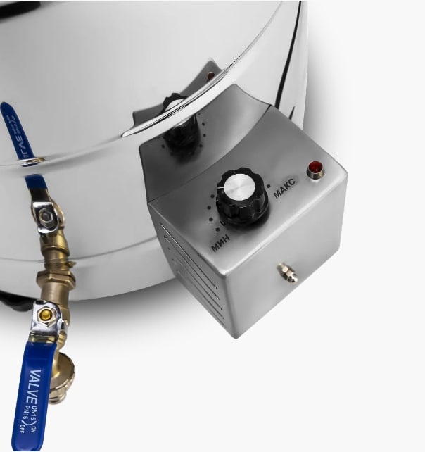 Приобретая модель в сборке с электрическим ТЭНом и регулятором мощности, вы можете проводить дистилляцию, установив её на пол, что является плюсом для тех, кто не может поставить устройство на плиту, поскольку этому мешает вытяжка.