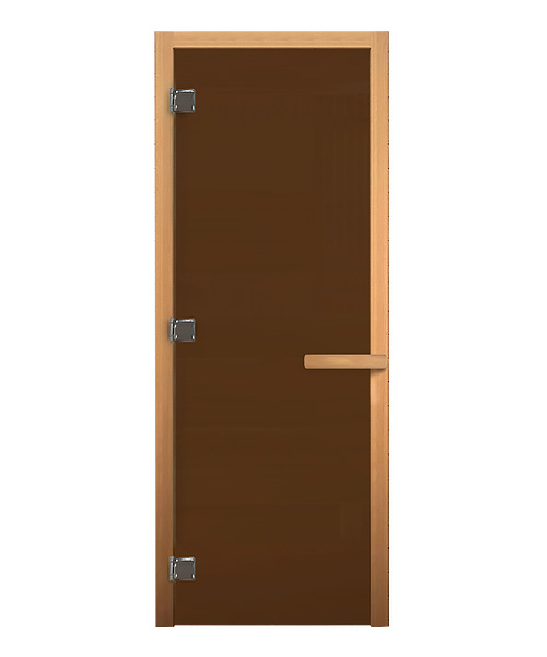 Стеклянная дверь для сауны изготовлена из высокопрочного закалённого стекла, что делает дверь максимально безопасной. Дверная коробка изготовлена из высококлассной срощенной породы древесины.Дверь укомплектована: