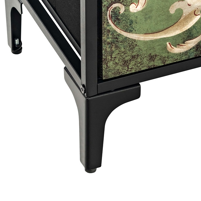 Каркас комода выполнен в черном цвете, что делает его стильным и современным. Черный цвет легко сочетается с любым интерьером и не теряет своей актуальности со временем.