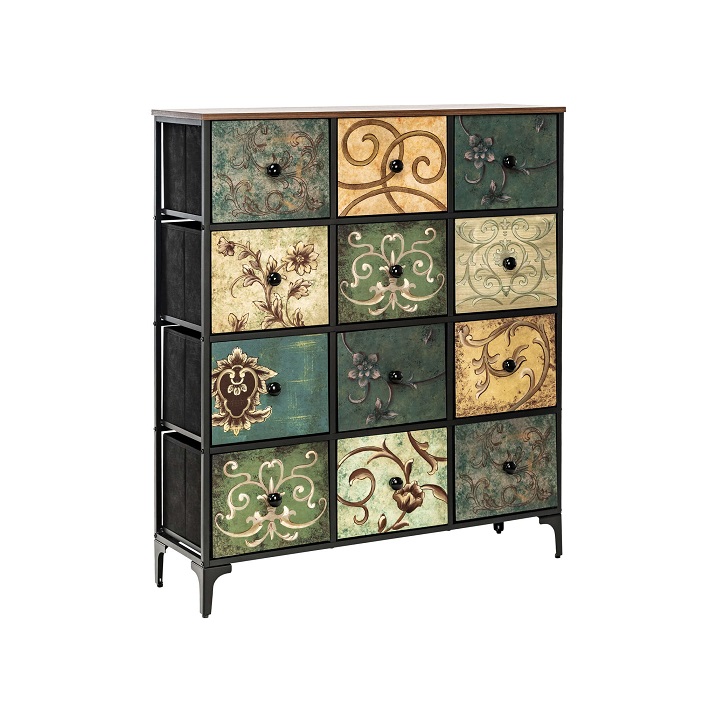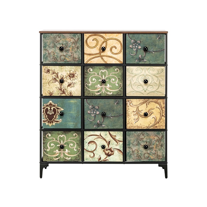 Комод Leset Лунет оснащен 12 ящиками, что позволяет разместить в нем все необходимые вещи. Ящики выполнены в мульти зеленом цвете, что придает комоду яркость и оригинальность.