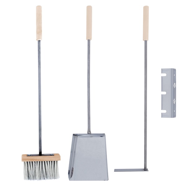 Набор предназначен для ухода за очагом, как во время горения, так и для чистки топки после него. Набор состоит из совка, кочерги, щетки.Технические характеристики: