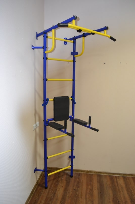 После занятий на этом спортивном снаряде его не нужно снимать и убирать. Нужно только приподнять ручки вверх, и пространство, занимаемое снарядом, освободится.