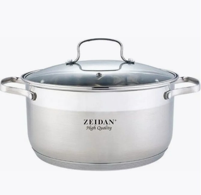 Кастрюля ZEIDAN Z-50350 объёмом 7 литров изготовлена из высококачественной нержавеющей стали, имеет диаметр крышки 26 см. Товар оригинальный и новый.Некоторые характеристики: 3-слойное капсулированное дно позволяет готовить с минимальным количеством воды и жира или совсем без них; комбинированная полировка снаружи, матовая полировка внутри; ручки «под золото»; крышка — стекло с металлической окантовкой; подходит для всех видов плит, включая индукционную; можно мыть в посудомоечной машине.