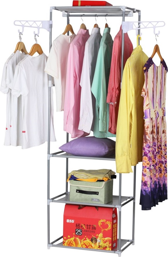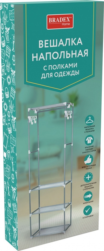 Вешалка напольная с полками для одежды, 55х35x170см, нерж.сталь, нетканое волокно, пластик