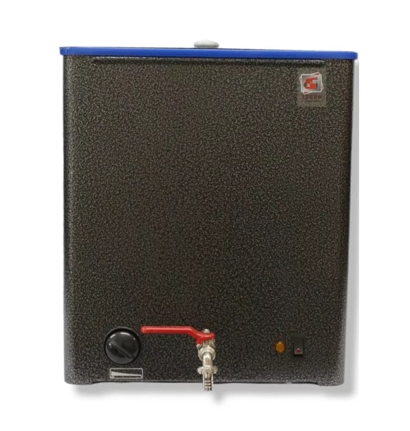 Бачок изготовлен из металла, снаружи полимерное покрытие, а внутри вставка из пластика. Безусловно основным преимуществом этих бачков является низкое потребление электроэнергии, качество изготовления и долгое время поддержание воды в горячем состоянии, за счёт того что бачок очень долго сохраняет тепло как термос. Это очень удобно: нагрев воду например утром, даже спустя 4-5 часов она ещё тёплая. Также эти бачки не подвержены коррозии , так как внутри они пластмассовые.