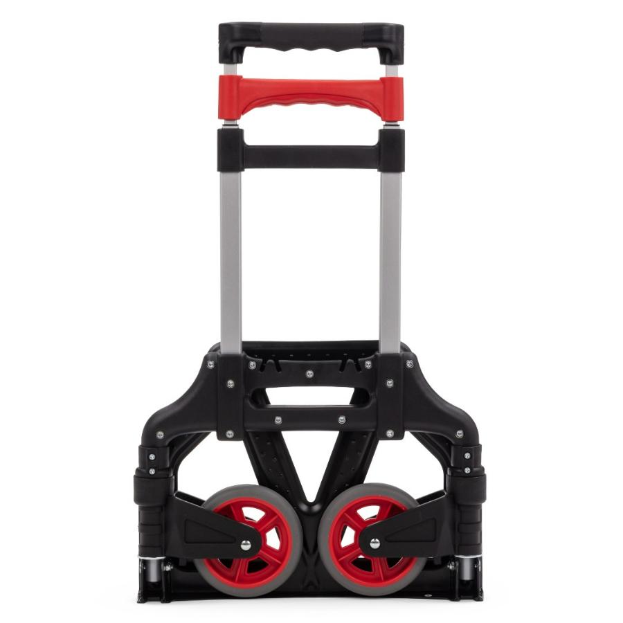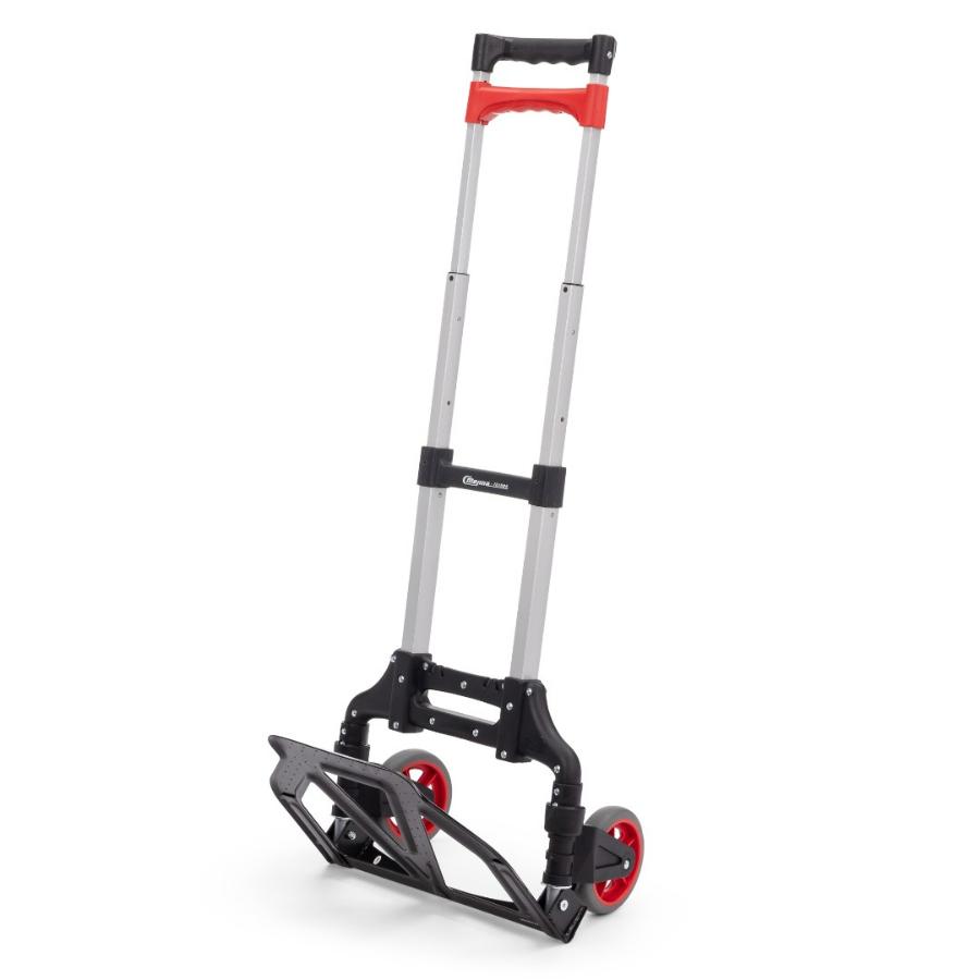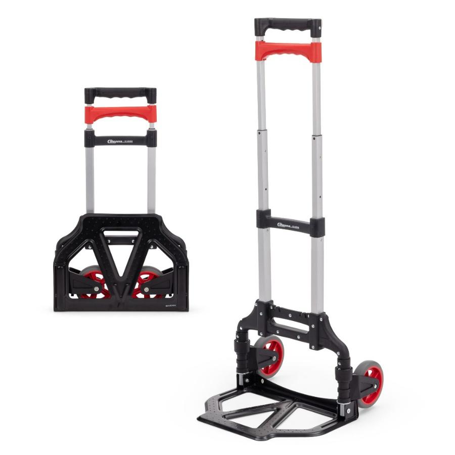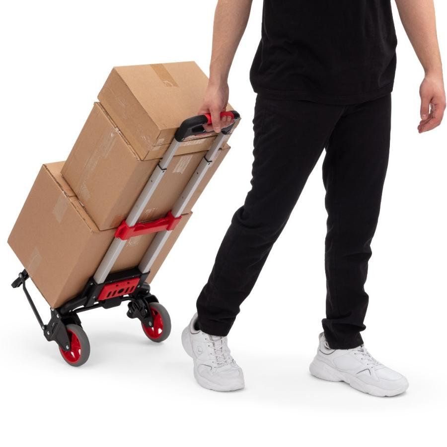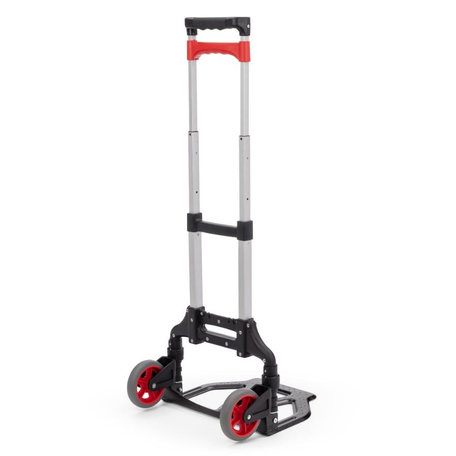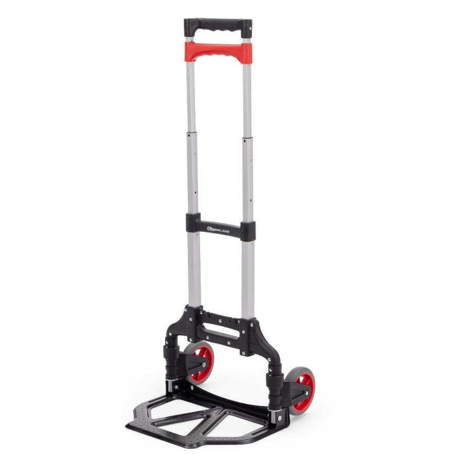 Складная тележка Стелла-техник MCM из алюминия c максимальной грузоподъемностью 60кг. Тележка быстро и удобно раскладывается и собирается за счет сложения телескопической ручки и колес вдоль корпуса. Материал рамы алюминий, стальная площадка. Размер площадки 280х385мм, Высота ручки регулируется в двух положениях: 90 см и 100 см, диаметр колес с роликовыми подшипниками 121 мм, ширина 29 мм. Расстояние между колесами (колея) 340 мм. Складные тележки идеально подходят для транспортировки выставочного оборудования, обслуживания маленьких складов и перевозки грузов в домашних условиях или во время путешествий. За счет узкого профиля и компактных размеров технику легко разместить на полке в самолете или багажнике машины.