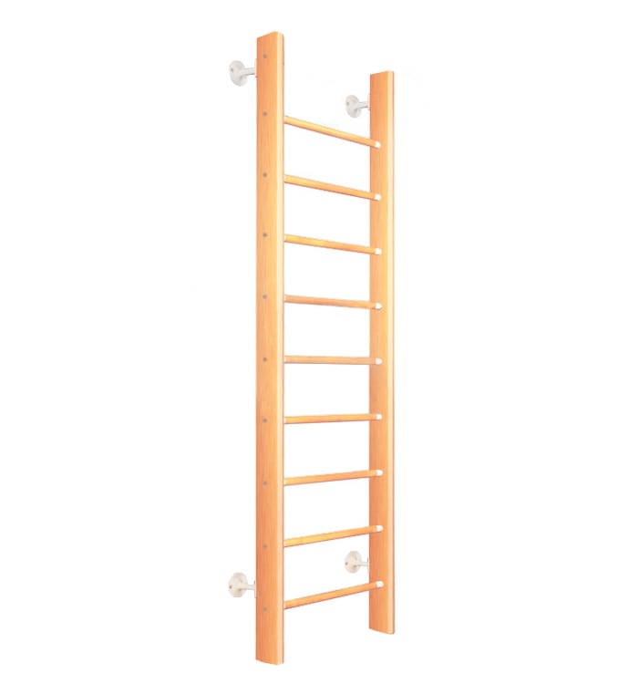 Шведская стенка из дерева имеет качественное покрытие, крепится к стене, и служит базой для создания спортивного уголка. Дополнительно можно приобрести навесные брусья, тренажер для осанки, турник навесной; рекомендуем также использовать маты для обеспечения безопасности детей. Габариты: ширина — 650 мм, высота 2300 мм.Характеристики:
