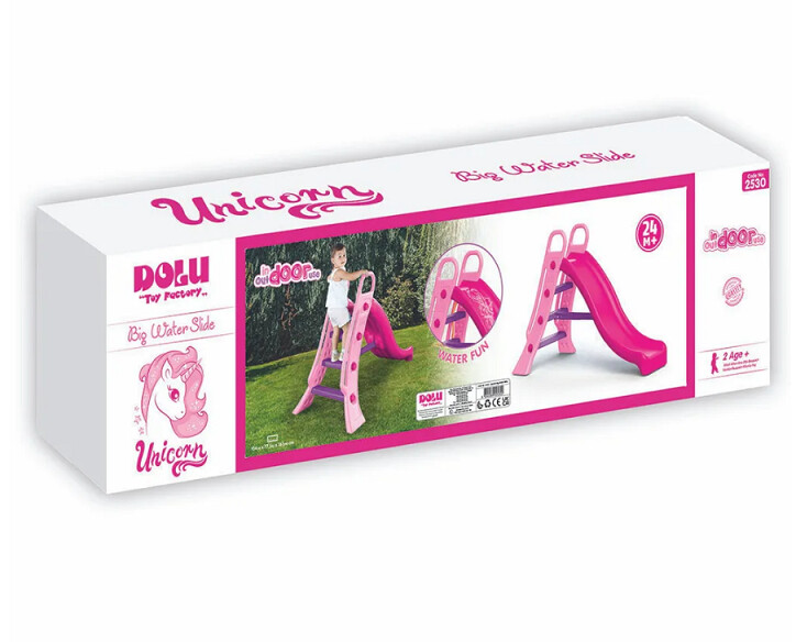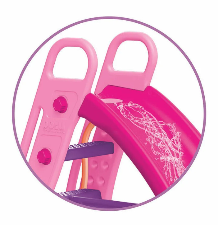 Горка Dolu 2530 большая предназначена для девочек в возрасте от 2 лет и выполнена в ярко-розовой расцветке. Забраться на нее можно по удобным ступенькам, а скатиться вниз по безопасному волнообразному спуску. Изделие кроме домашнего, допускает еще и уличное использование за счет того, что материал, из которого оно изготовлено, устойчив к внешнему воздействию (ультрафиолету, перепадам температур и осадкам). В данной модели предусмотрена возможность подключения шланга с водой, что позволяет получить развлекательный аттракцион водную горку.Горка для детской площадки — это отличный способ организовать активный отдых и развлечения для детей. Яркий дизайн и привлекательные цвета горки обязательно привлекают внимание малышей, делая ее центром внимания малыша на любом предмете.
