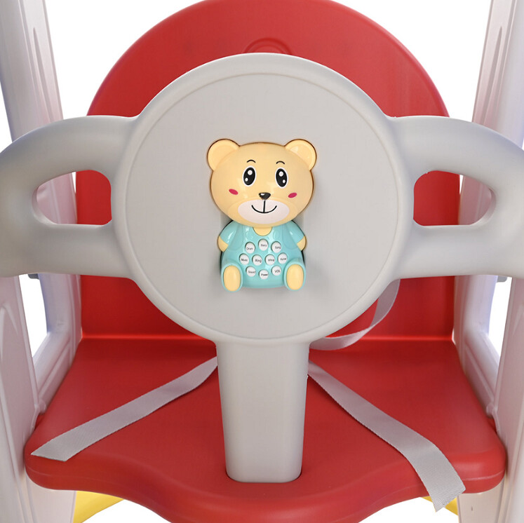 - Элементы в комплекте: Баскетбольная корзина, горка, качели, лестница, мяч, музыкальный блок, игровая зона (машинка), насос