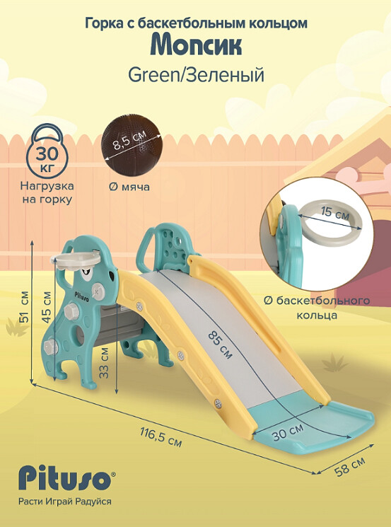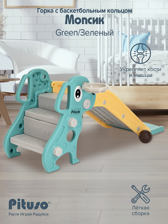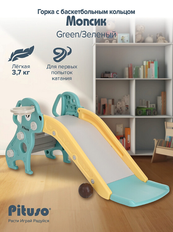 Горка-комплекс Pituso Мопсик с баскетбольным кольцом FE-HT-XG0-green