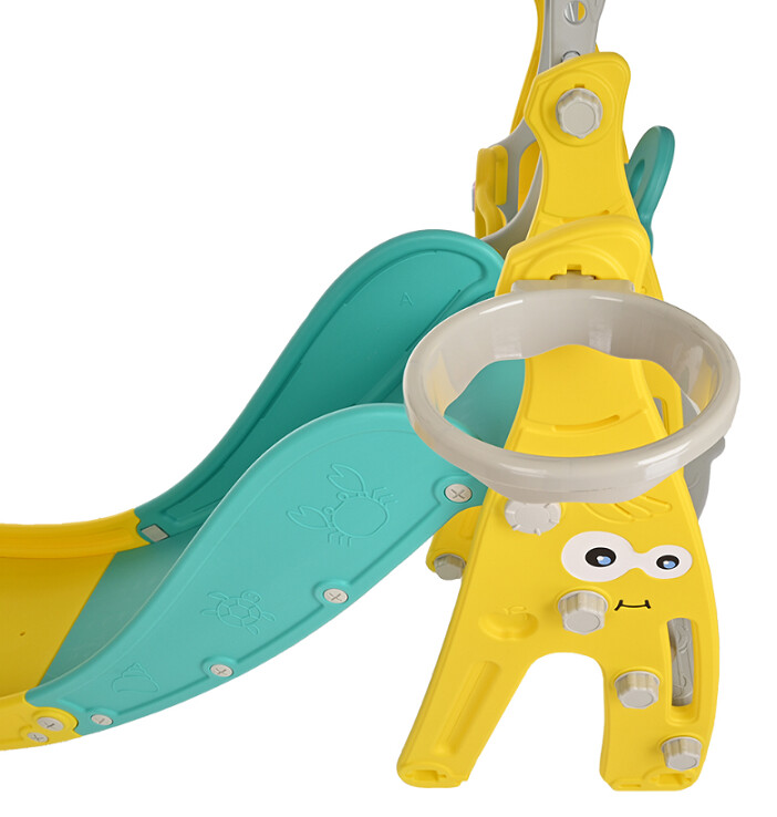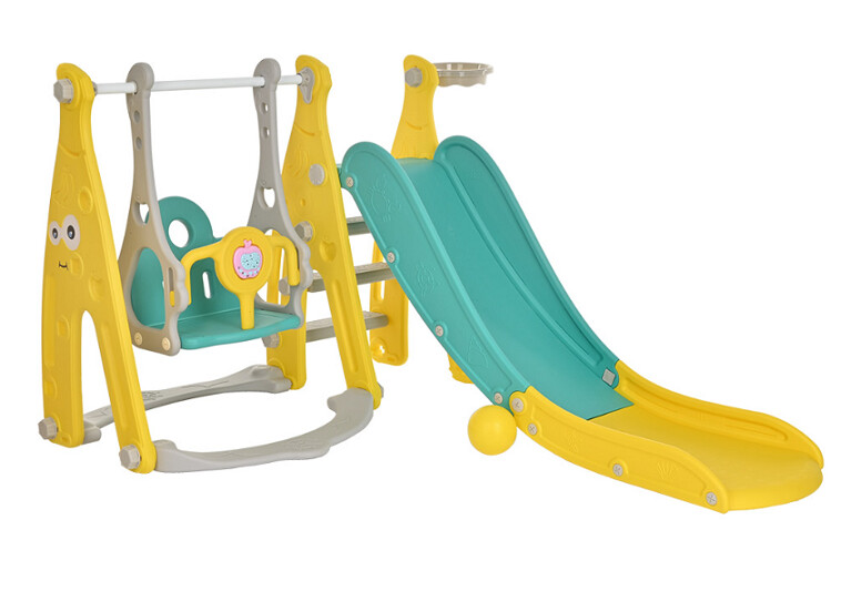 - Элементы в комплекте: Баскетбольная корзина, горка, качели, лестница, мяч