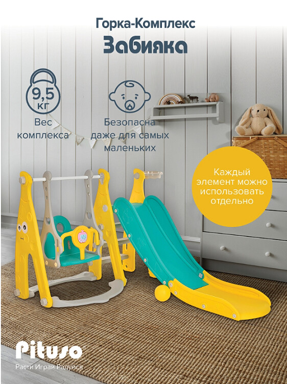Горка-комплекс Pituso Забияка YYS815 идеально подходит для семей с несколькими детьми, в том числе разных возрастов. Пока младший счастливо качается в качелях, старший радуется на горке или забрасывает мяч в баскетбольное кольцо.