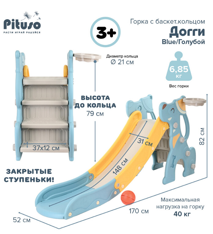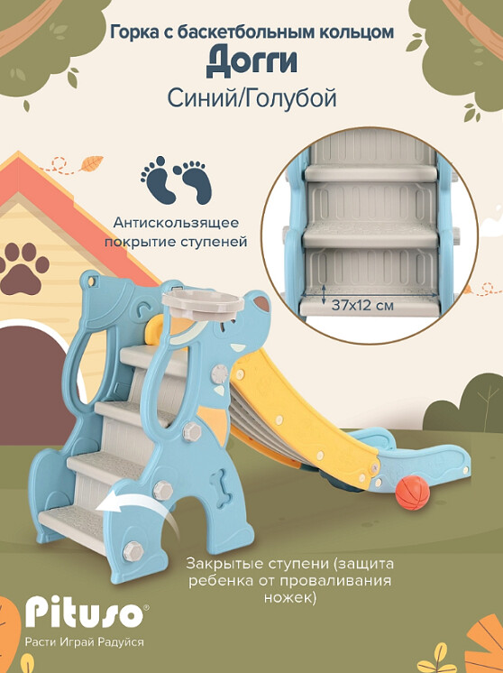 Горка Pituso— это не только веселье, но и забота о безопасности. Все элементы конструкции сделаны из безопасного и качественного пластика, который не имеет неприятного запаха и устойчив к внешним воздействиям. Инновационный дизайн включает в себя плавный спуск, широкое основание для большей устойчивости и подходит как для мальчиков, так и для девочек.