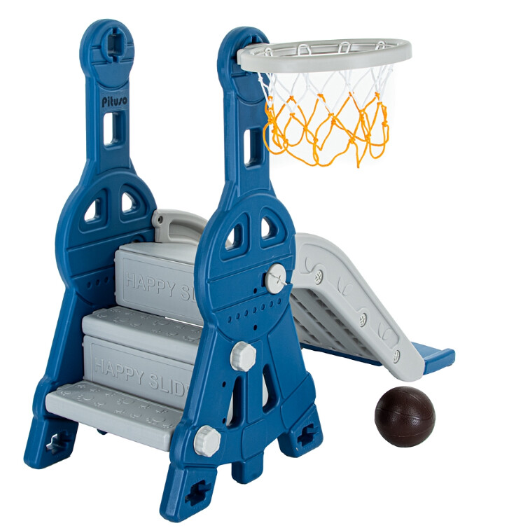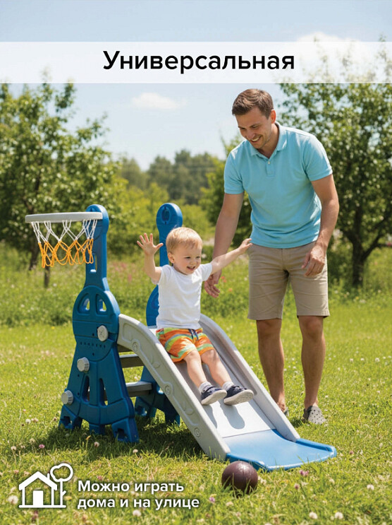 - Элементы в комплекте: Баскетбольная корзина, горка, лестница, мяч
