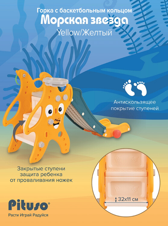 Горка Pituso— это не только веселье, но и забота о безопасности. Все элементы конструкции сделаны из безопасного и качественного пластика, который не имеет неприятного запаха и устойчив к внешним воздействиям. Инновационный дизайн включает в себя плавный спуск, широкое основание для большей устойчивости и подходит как для мальчиков, так и для девочек.