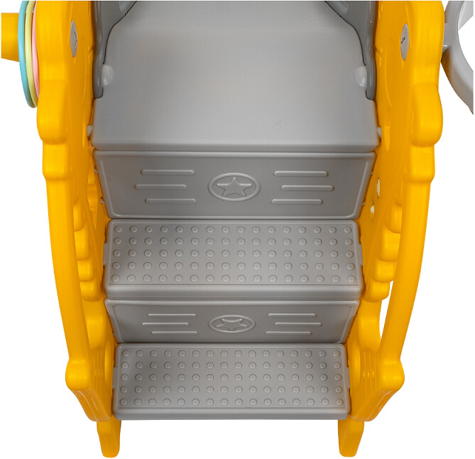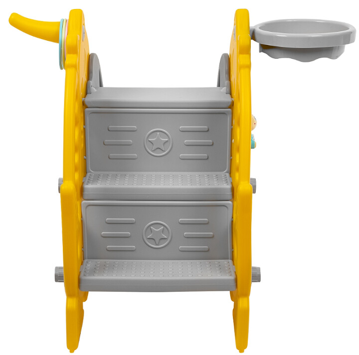 - Элементы в комплекте: Баскетбольная корзина, горка, лестница, мяч, музыкальный блок