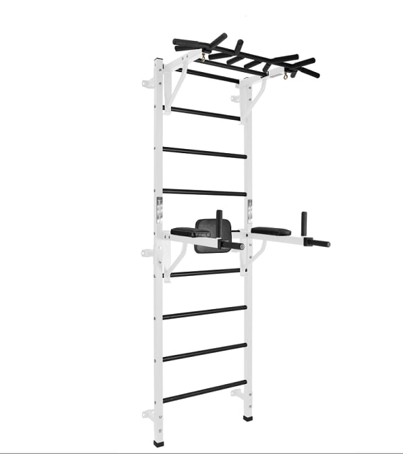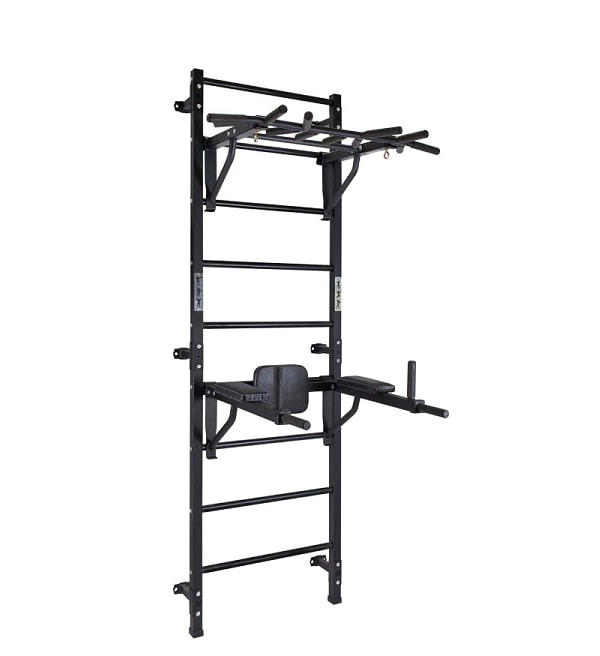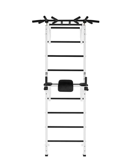 Стенка имеет надежную стальную конструкцию. Высота стенки 226 см, компактный размер для любой квартиры. Шведская стенка крепится к несущей стене 6-тью крепежами на 12 болтов, обеспечивая абсолютную жесткость стенки. Выдерживает нагрузку до 250 кг. Перекладины выполнены из металлической трубы, покрытой ПВХ резиной, что обеспечивает комфорт при выполнении упражнений на комплексе, а также обрезиненное покрытие защитит перекладины от царапин при навешивании навесного оборудования, исключая контакт металла с металлом. Аккуратный внешний вид впишется в любой интерьер. Все стенки имеют порошковую окраску. Вертикальные стойки имеют пластиковые заглушки на опорах, что защитит пол от царапин.