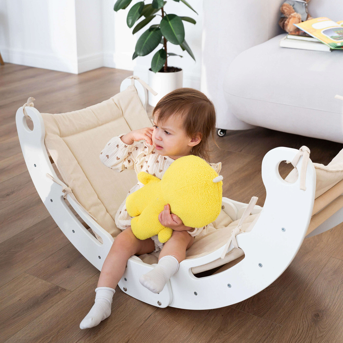 Детская качалка способствует развитию коммуникативных навыков, если в игре принимают участие несколько человек. Она развивает пространственный и социальный интеллект.