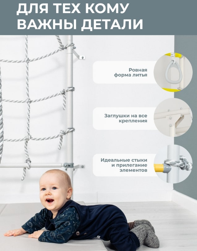 Комплектация: канат, кольца гимнастические, веревочный лаз, рукоход