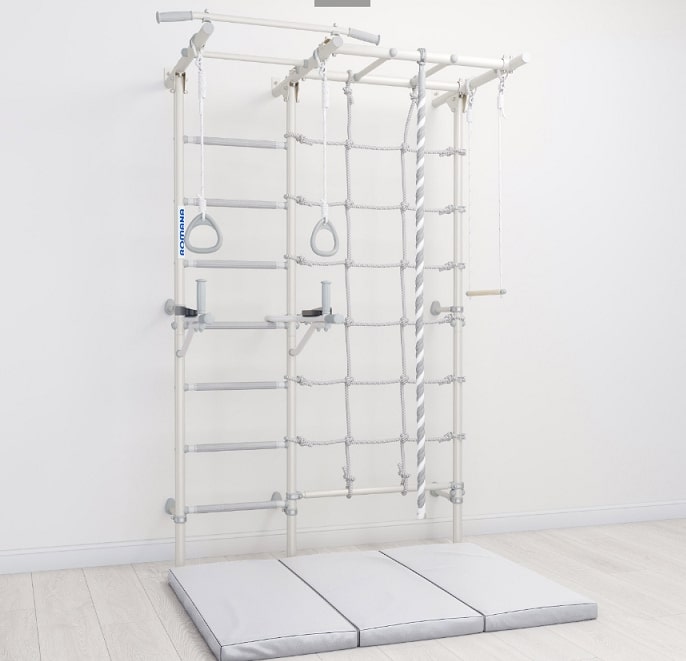 Детский спортивный комплекс ROMANA S7.1 — это универсальный спортивный инвентарь, идеально подходящий для тех, кто ценит активный образ жизни и предпочитает заниматься спортом дома. .Игровой комплекс все так же изготовлен из высококачественных материалов и обладает прочной конструкцией, что гарантирует его долговечность и надежность. Он оснащен различными элементами, такими как турник, рукоход, трапеция, канат и кольца, позволяющими выполнять разнообразные упражнения. Благодаря этому шведская стенка подходит как для детей, так и для взрослых.