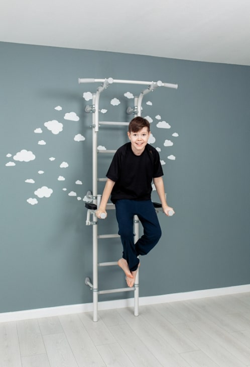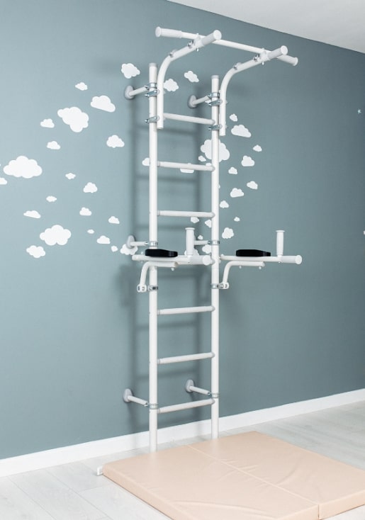 ROMANA S10 - домашний спортивный комплекс для всей семьи, на нем могут заниматься и дети, и взрослые.Он достаточно компактен и не занимает много места: ширина ступеней составляет 410 мм, это самый оптимальный размер для занятий на брусьях, которые идут в комплекте. Брусья откидные, и после занятий их можно перевести в вертикальное положение. Турник можно передвигать по высоте, и закрепить как удобно пользователю с помощью надежных современных хомутов. Спортивный комплекс фиксируется к стене, фиксаторы можно передвигать по вертикали, чтобы избежать попадания в проводку или полости.