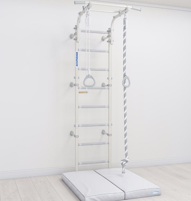 Детский спортивный комплекс ROMANA Next - настоящий хит в линейке шведских стенок. Он легко собирается и фиксируется к стене с помощью подвижных крепежей. Они позволяют зафиксировать стенку в различных положениях, включая угловое. Можно рационально расположить крепеж на той высоте, которая вас устроит, и избежать попадания в проводку или полости в стене.В комплекте многофункциональной шведской стенки имеется обширный набор разнообразного оборудования, такого как турник подвижный, канат, кольца гимнастические, трапеция, что делает ее полноценной зоной для игр. Для обеспечения безопасности во время активного времяпрепровождения предусмотрен мат толщиной 100мм, который легко раскладывается и складывается благодаря складной конструкции. Подвижный турник можно регулировать в зависимости от роста пользователя, а также в комплекте имеется баскетбольный щит.