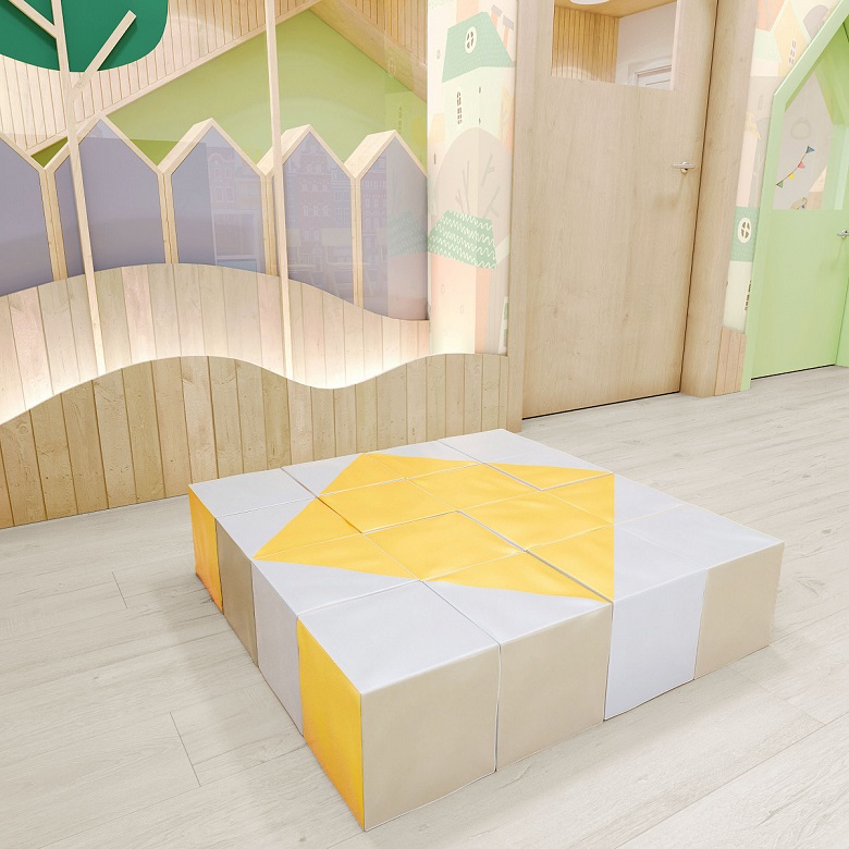 У ребенка развиваются двигательные навыки и безграничная фантазия, занять ребенка можно с двух лет и это будет его самая любимая игра. Мягкие игрушки «Калейдоскоп» вызывают интерес и привлекают ребенка независимо от пола. В детских учреждениях сегодня такие предметы очень актуальны, дети облепляют модули со всех сторон. Внутри находится качественный и мягкий поролон, а сверху изделие обшито кожазаменительным материалом. Изделия безопасны для ребенка и не травмоопасны, что самое главное в игре, особенно когда собирается целая компания.