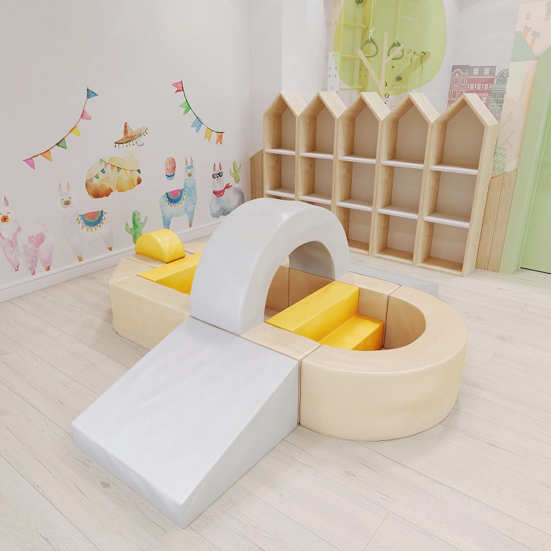 Красивейший игровой комплекс «Авиалайнер» из мягких деталей очаровывает и просто незаменим для детских спортивных залов, релаксационных кабинетов и игровых комнат для детей. Игра будет интересной и поднимет настроение у ребенка, можно одновременно играть и в игрушки и в спортивном комплексе. Фантазия детей безграничная и из этих элементов они придумают такое, что вам даже и в голову не придет. Мягкий комплекс «Авиалайнер» представляет собой набор геометрических фигур увеличенного размера, позволяющий ребенку развиваться и обучаться.
