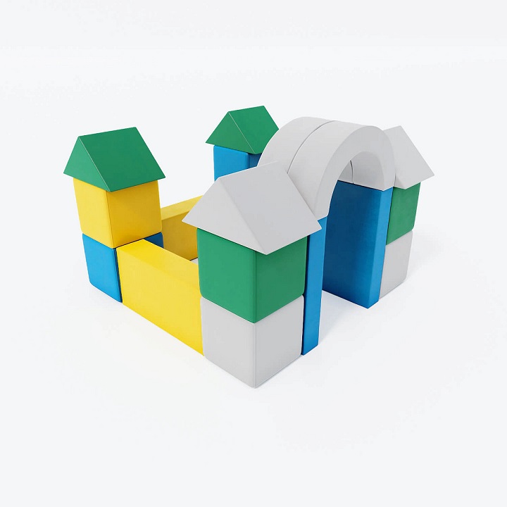 Красивейший игровой комплекс из мягких деталей очаровывает и просто незаменим для детских спортивных залов, релаксационных кабинетов и игровых комнат для детей. Игра будет интересной и поднимет настроение у ребенка, можно одновременно играть и в игрушки и в спортивном комплексе. Фантазия детей безграничная и из этих элементов они придумают такое, что вам даже и в голову не придет. Мягкий комплекс «Замок» представляет собой набор геометрических фигур увеличенного размера, позволяющий ребенку развиваться и обучаться.