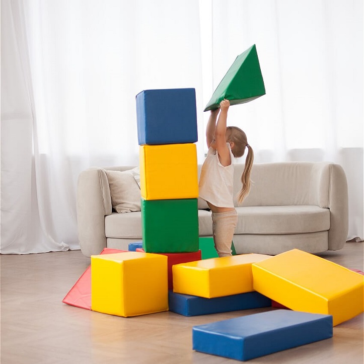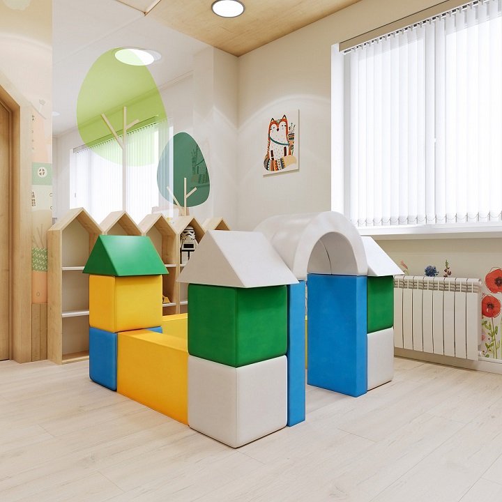 Развивающий мягкий комплекс предназначен для игр детей от трех лет и старше. Мягкий набор модулей можно установить как в детских дошкольных и младших школьных учреждениях, так и дома. С помощью разнообразных форм, ребенок может отстраивать множество уникальных объектов, которые зависят только от его фантазии. Комплекс развивает ребенка с самого раннего возраста, с помощью мягких модулей, малыш изучает цвета, формы и размеры.Игры на комплексе развивают творческие способности и фантазию, а также снимают стресс и улучшают настроение. Изделие выполнено из качественных материалов: поролона и винилискожи. Прочная винилискожа устойчива к истираниям, поэтому изделие прослужит долго и в детских учреждениях, и в домашней эксплуатации. Мягкий поролон быстро восстанавливает изначальную форму, обладает достаточной мягкостью и легкостью, обеспечивая комфортные условия для детей во время игр.
