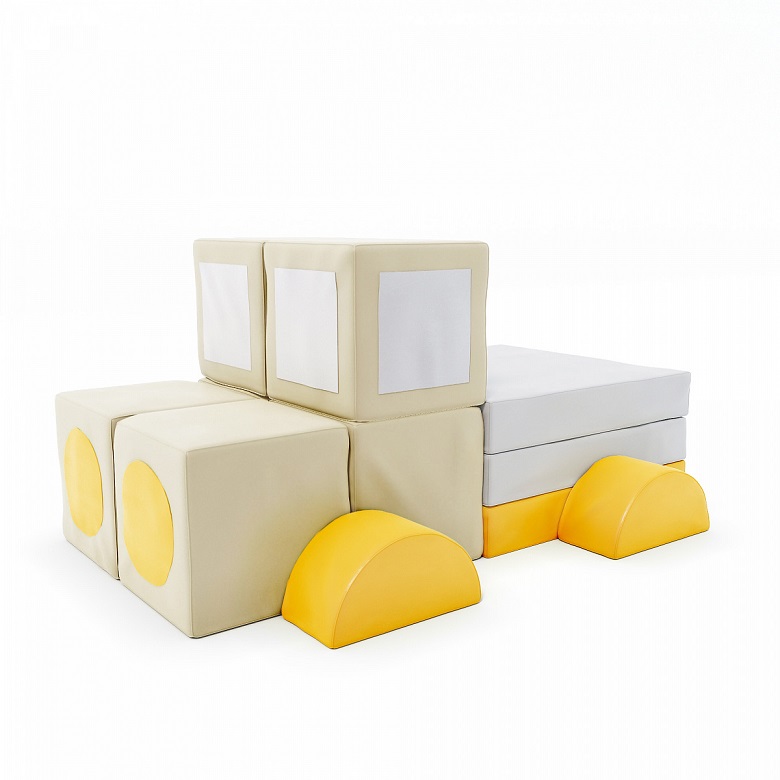 Мягкий комплекс станет незаменимым игровым аксессуаром для детей дома, в развивающих центрах и в детски садах. Изделия очень качественные и выполнены из упругого поролона. Модули деталей мягкие и в них нет острых углов, что говорит о полной безопасности для ребенка. Выполненные из винилискожи поверхности подвергаются аккуратной чистке и даже влажной чистке. Яркие цвета радуют глаз и для ребенка представляют еще больший интерес. Ребенок с помощью огромных составляющих мягкого игрового комплекса запросто выполнит любую фигуру. Изделия можно применять как предметы мебели в комнате ребенка.